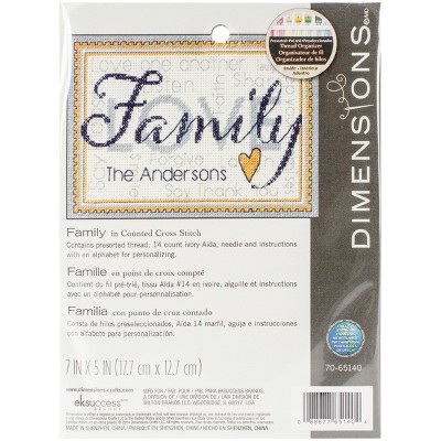 - Gorgeous designs, vibrant colors, the highest quality materials are all things that Dimensions brings to you in each of there needlework kits This kit includes: 14 count white Aida, Cotton & metallic thread, thread sorter, needle and easy to follow instructions including an alphabet for personalizing and a color accented chart.